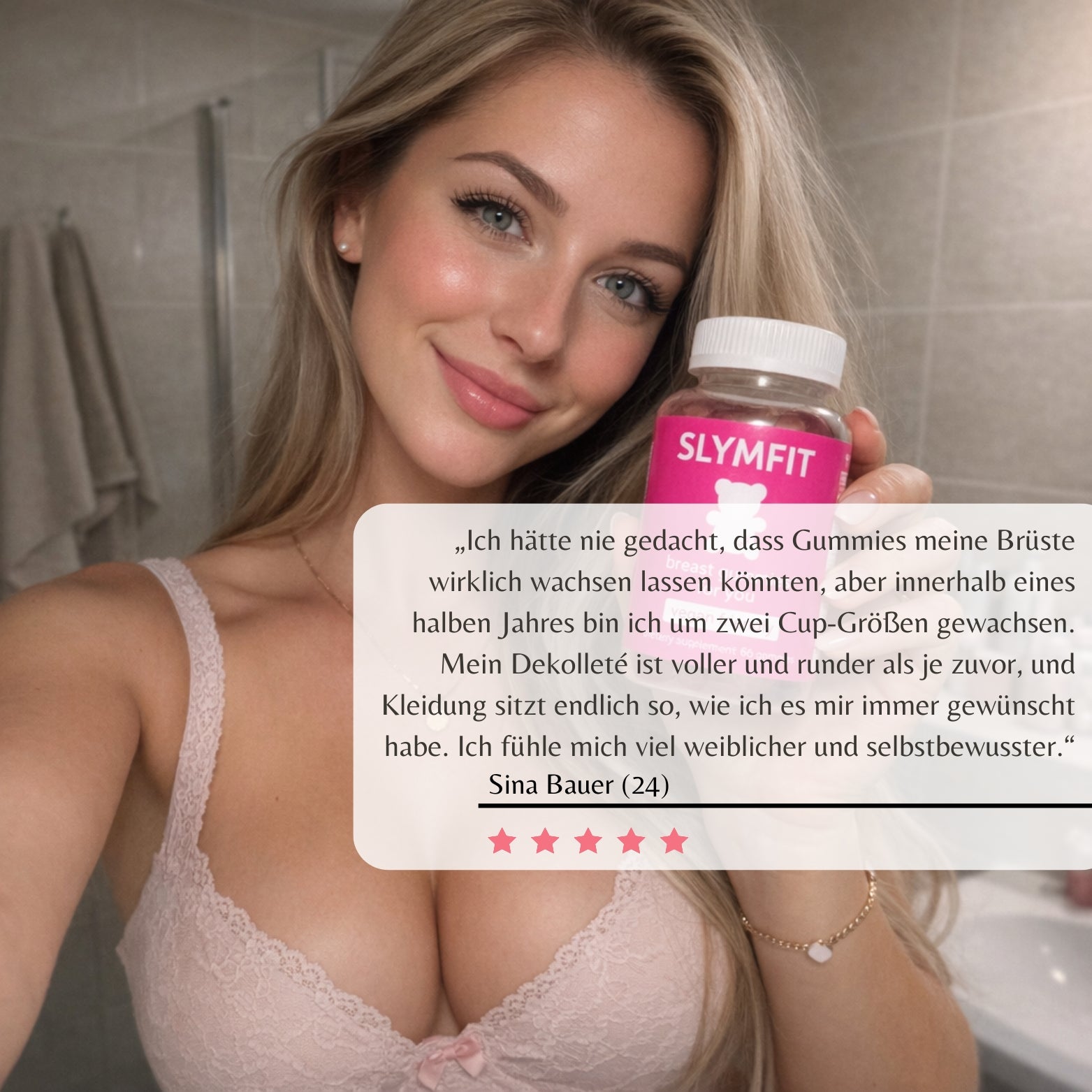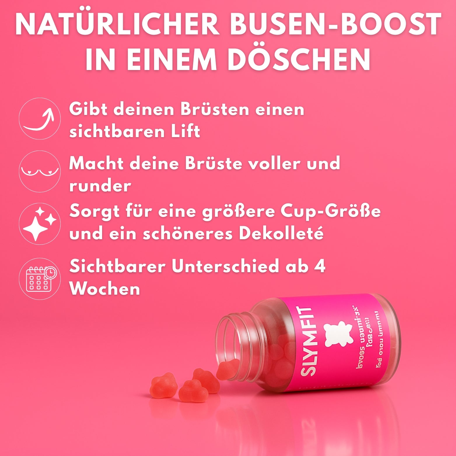 Die SLYMFIT Busen-Boost Gummies bestehen aus einer sorgfältig ausgewählten Mischung botanischer Extrakte, die dein Brustvolumen und deine Rundungen täglich unterstützen.