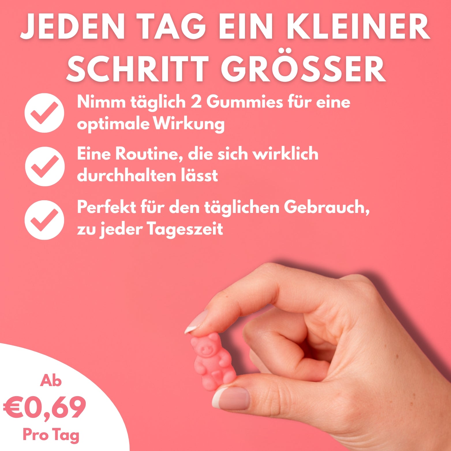 Iedereen reageert anders, en soms heeft je lichaam gewoon wat meer tijd nodig. Zorg ervoor dat je de gummies elke dag consequent gebruikt voor het beste resultaat.