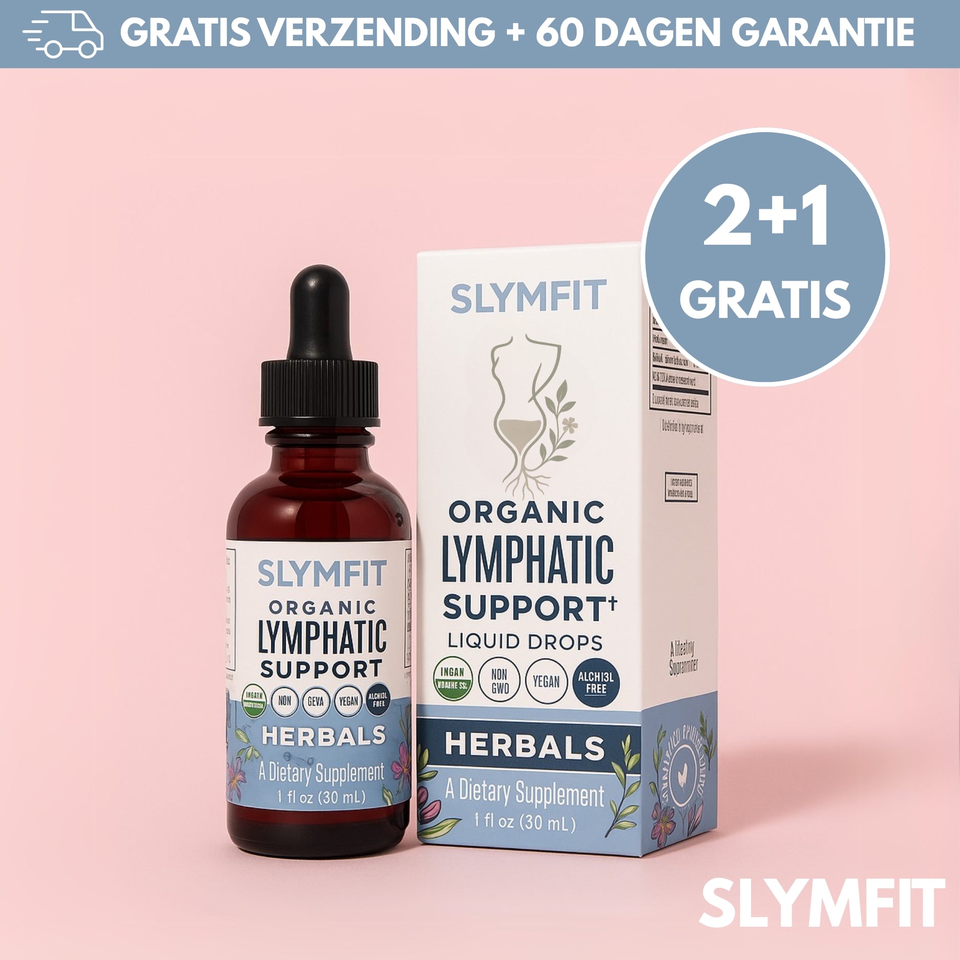 SLYMFIT werkt via het lymfestelsel en bevat geen hormonale ingrediënten. Het ondersteunt de natuurlijke afvoer van afvalstoffen en vocht, zonder je hormoonhuishouding te beïnvloeden.