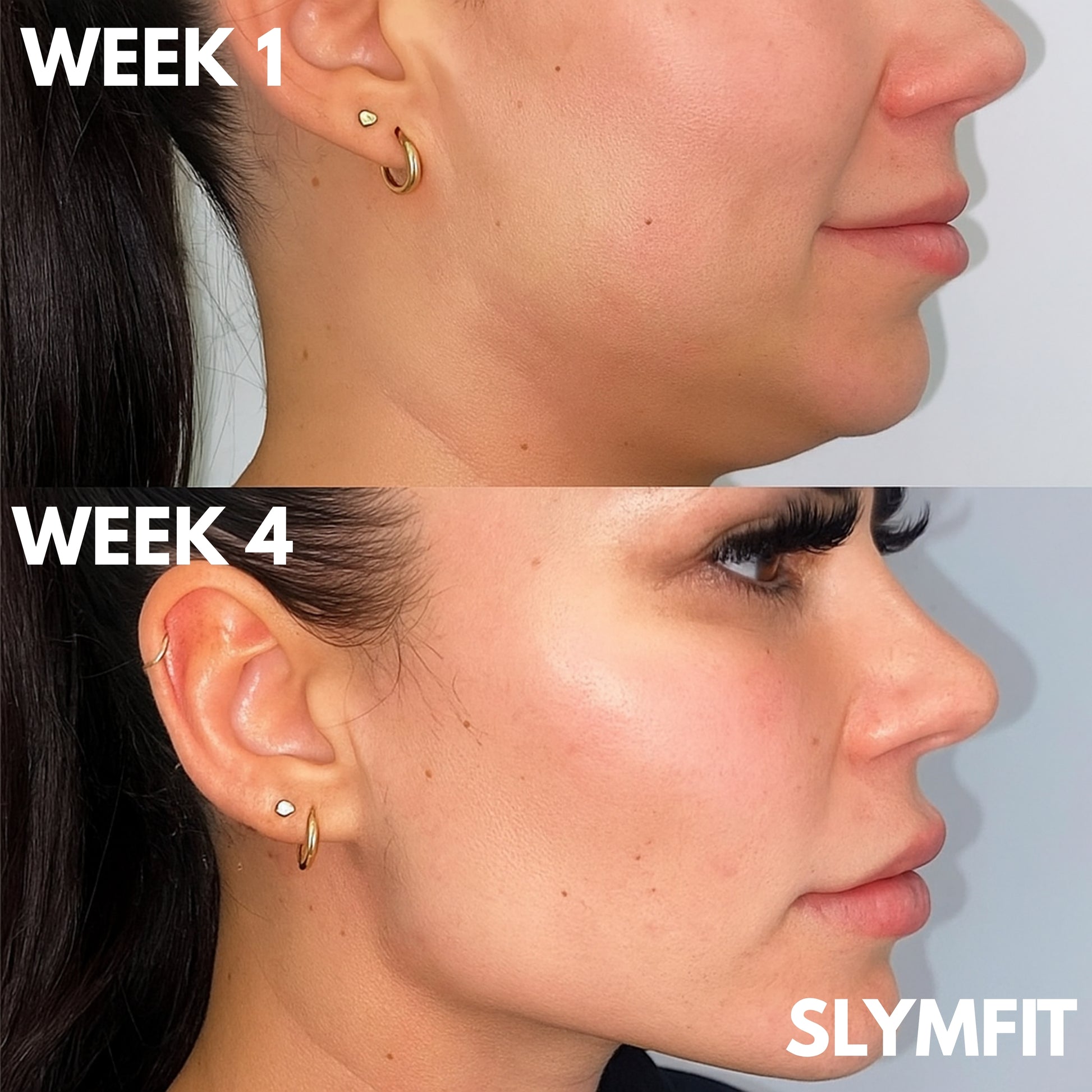 Most users notice a lighter, less puffy feeling in their face — especially around the chin and jawline — within 2 to 4 weeks. For visible contouring and longer-lasting results, we recommend using SLYMFIT consistently for at least 30 to 60 days.